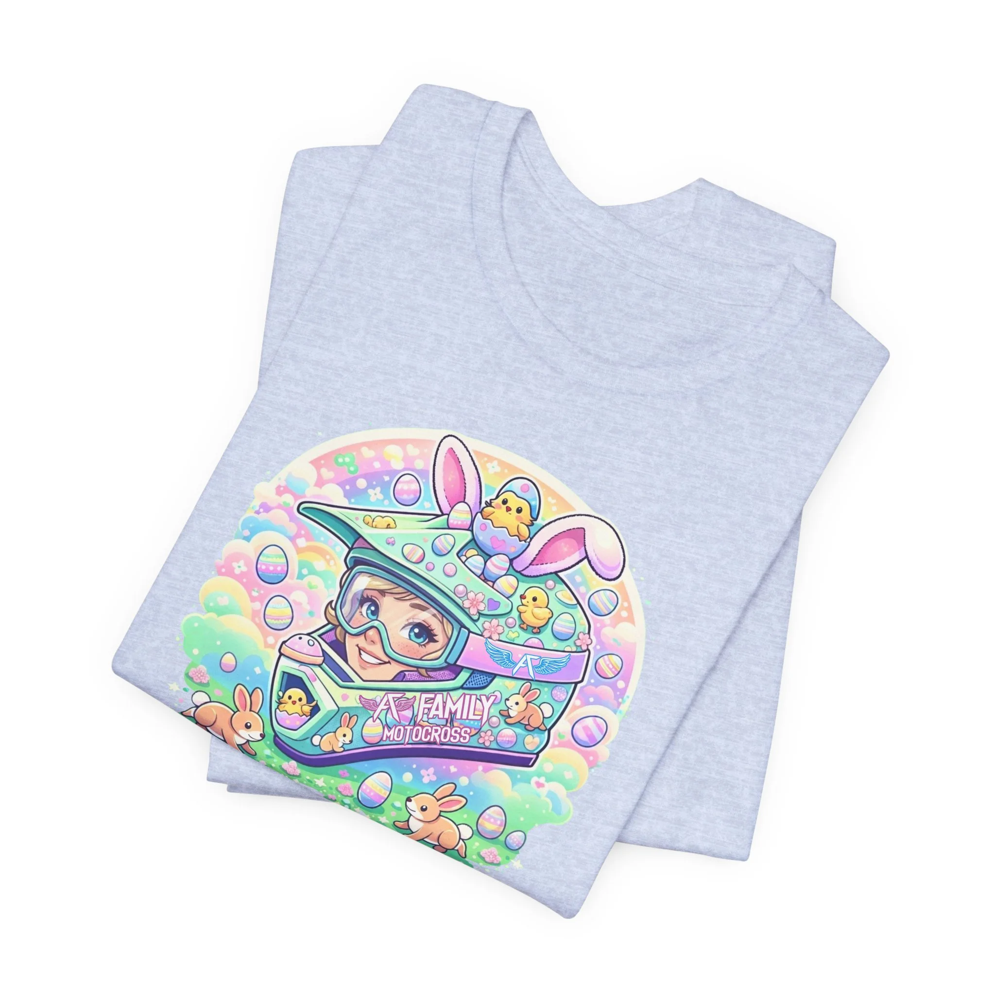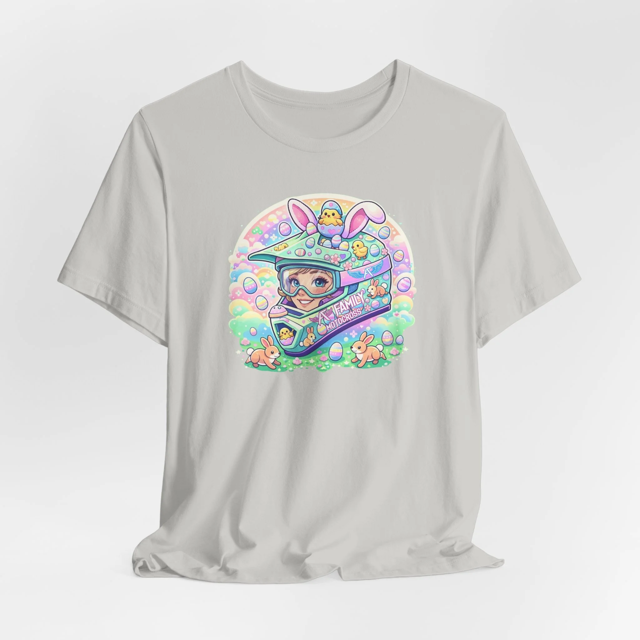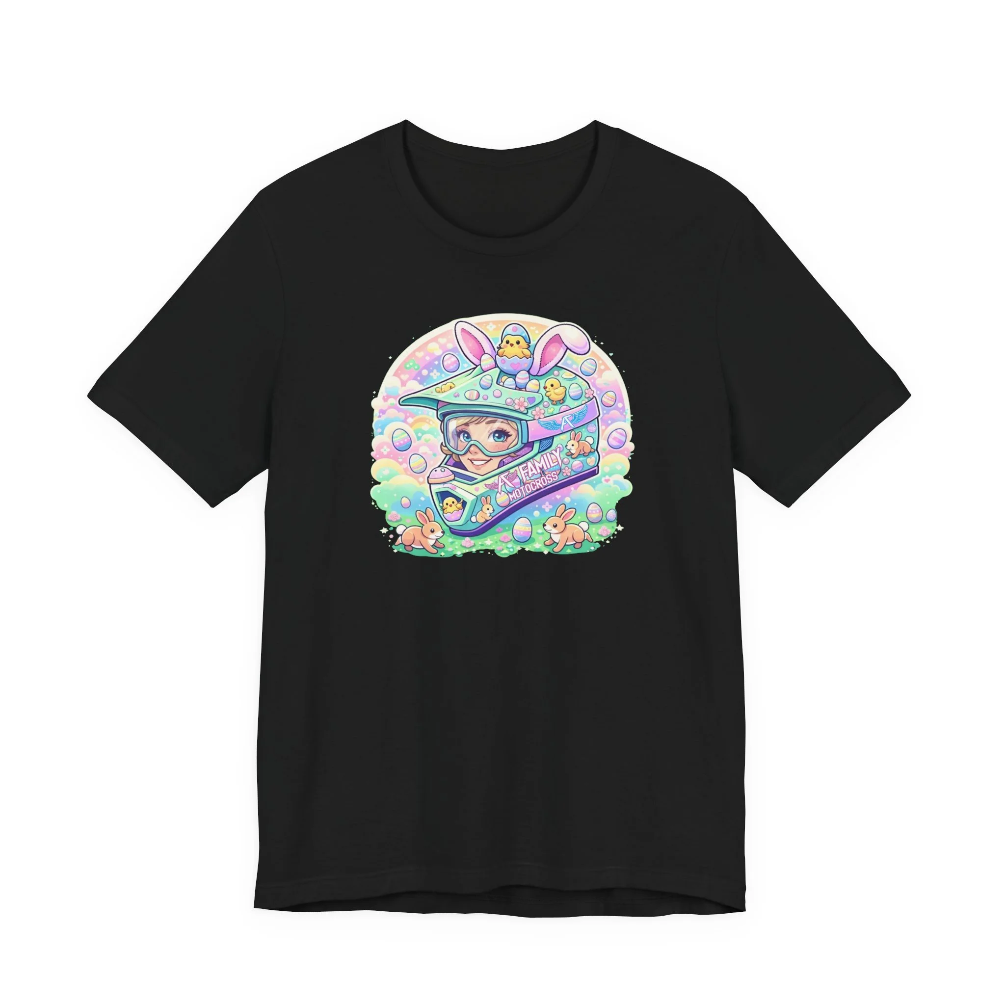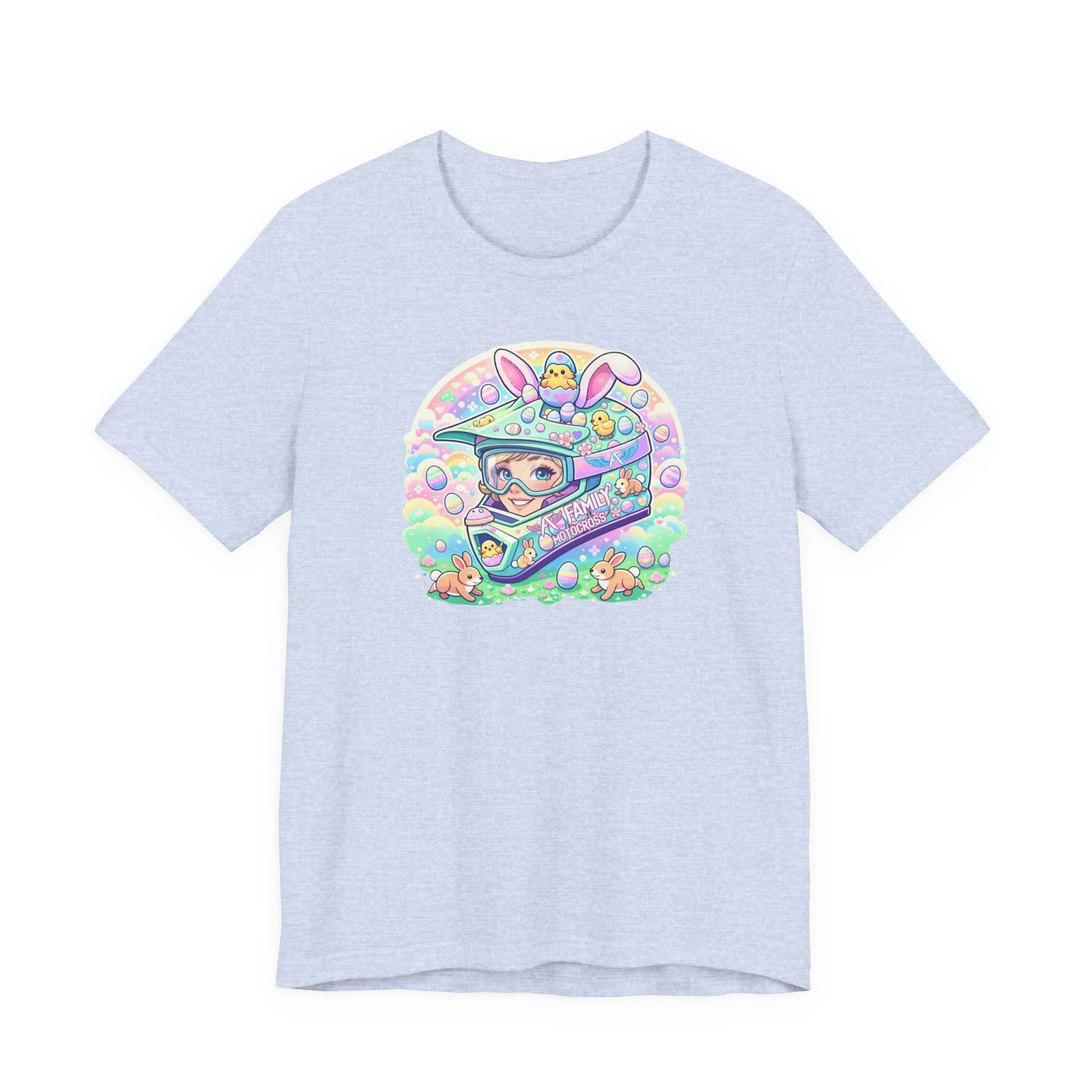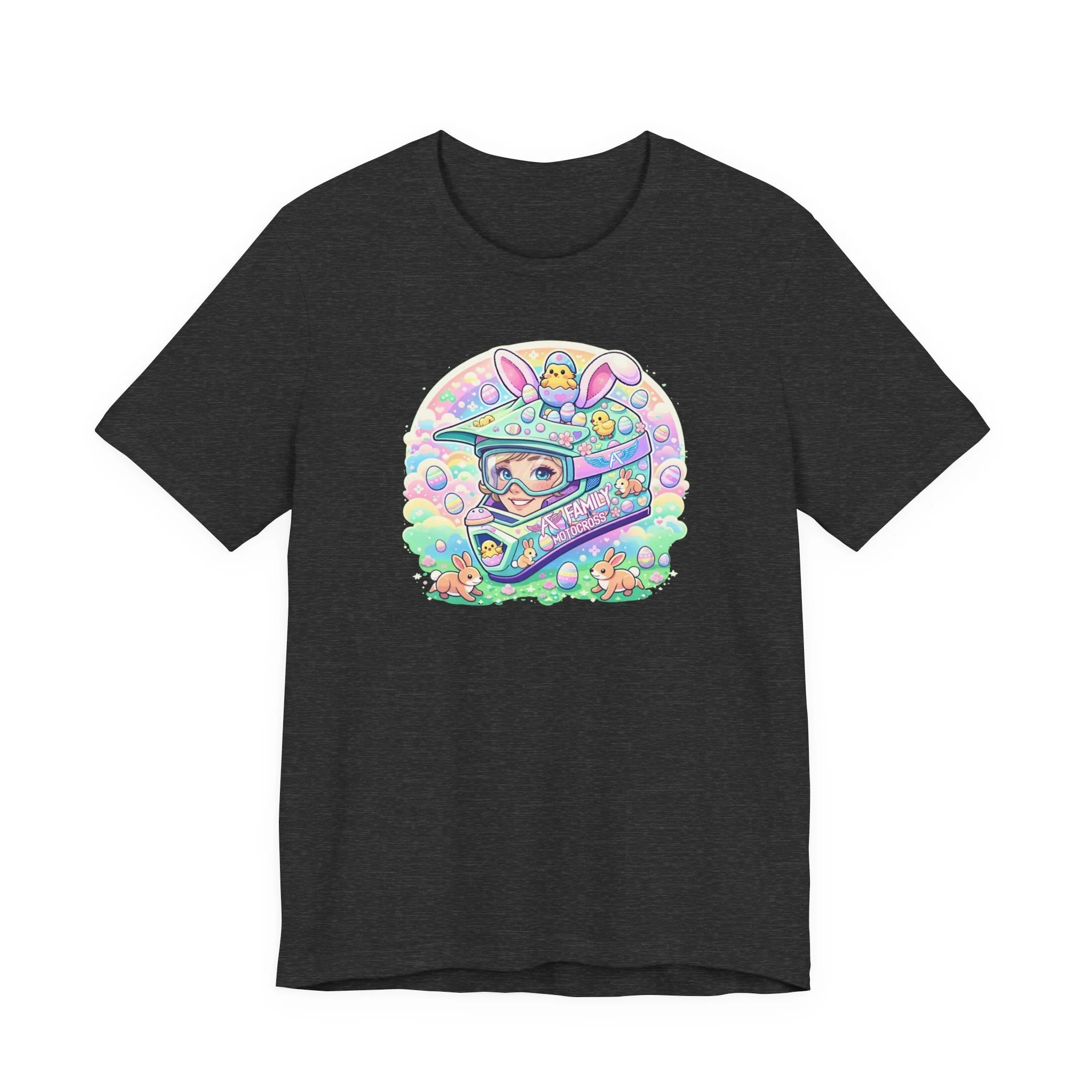 The A7 Family Dreamy Bunny Helmet Adult Shirt brings together motocross passion and playful spring vibes. Featuring a pastel bunny helmet design surrounded by soft, dreamy details, this tee is all about riding with heart and family spirit.