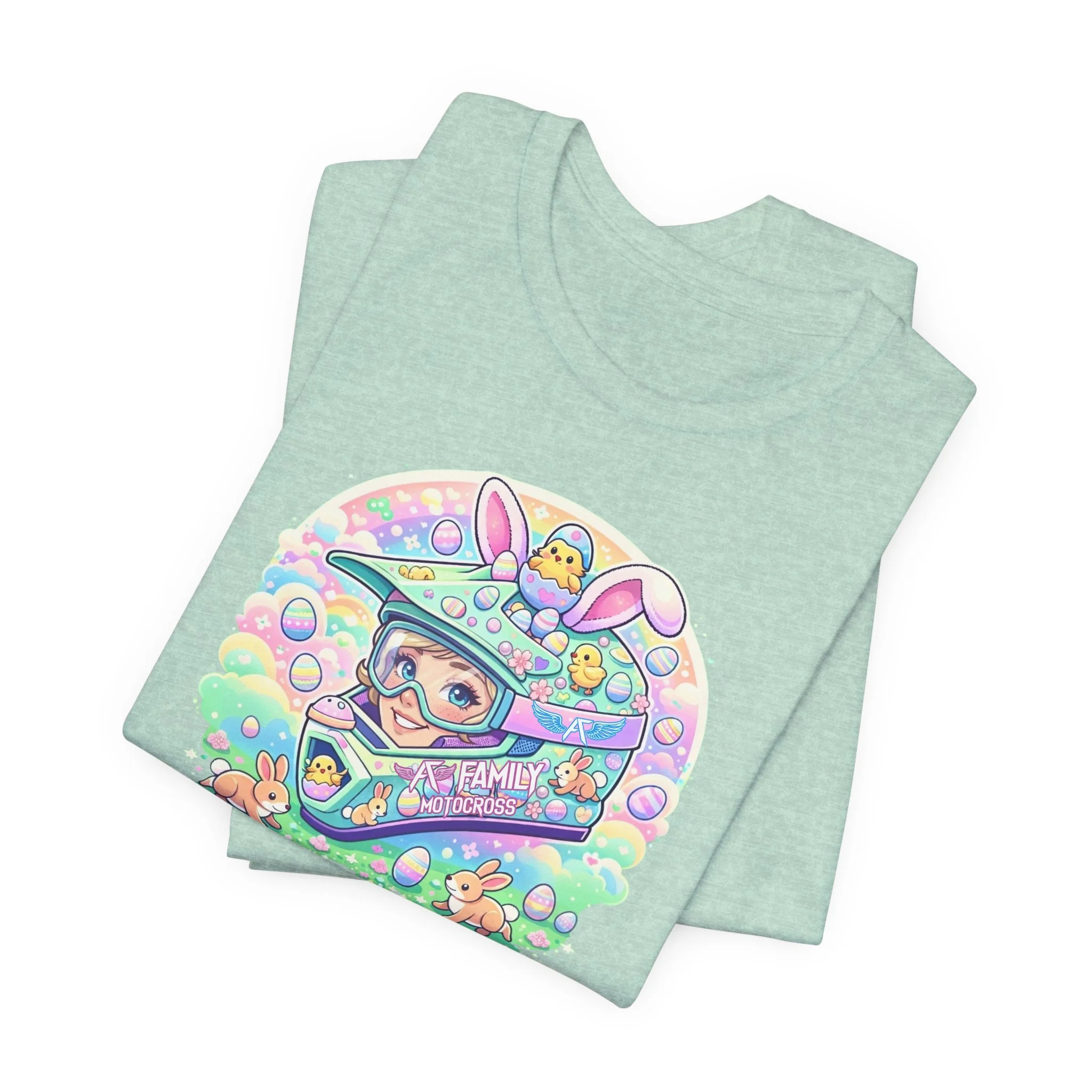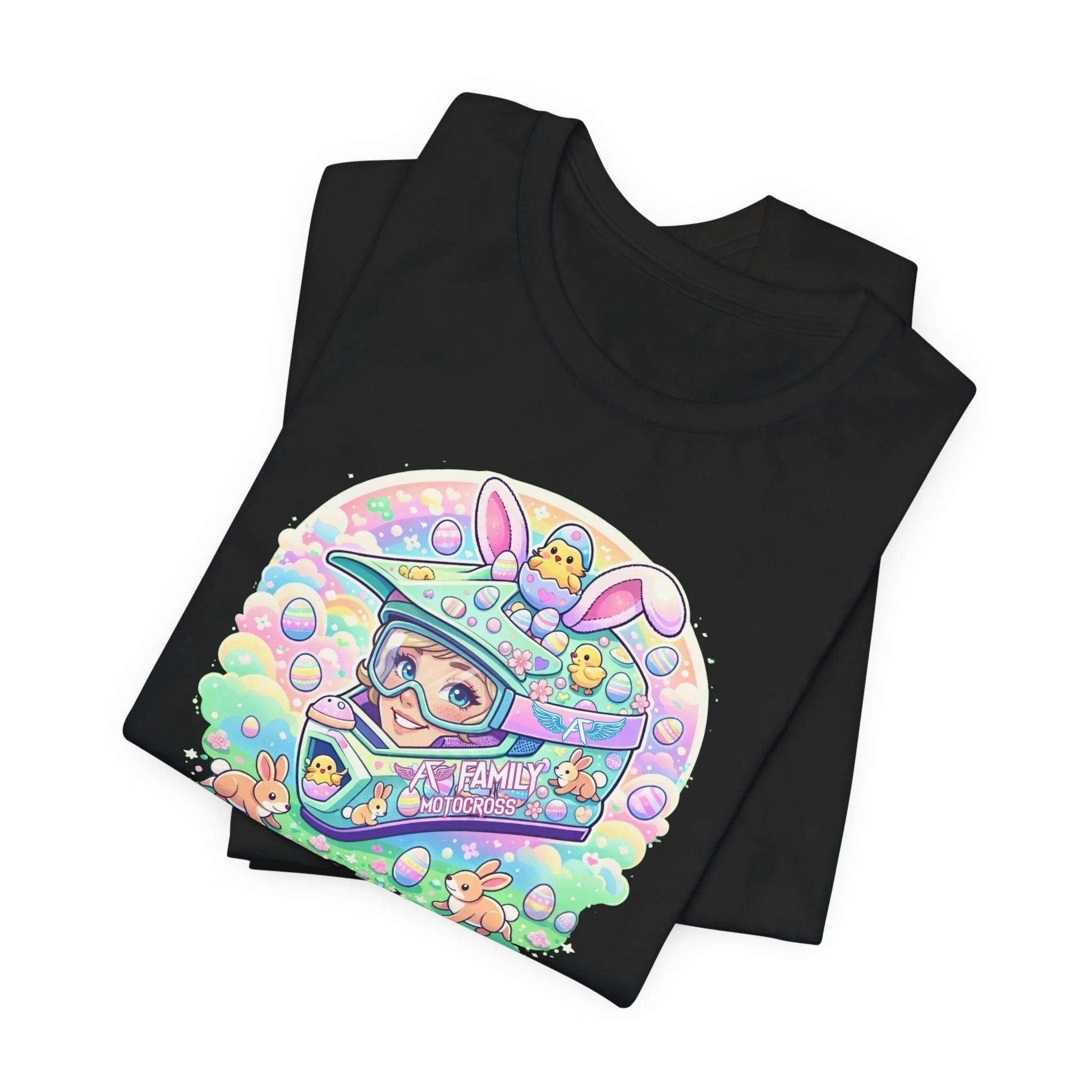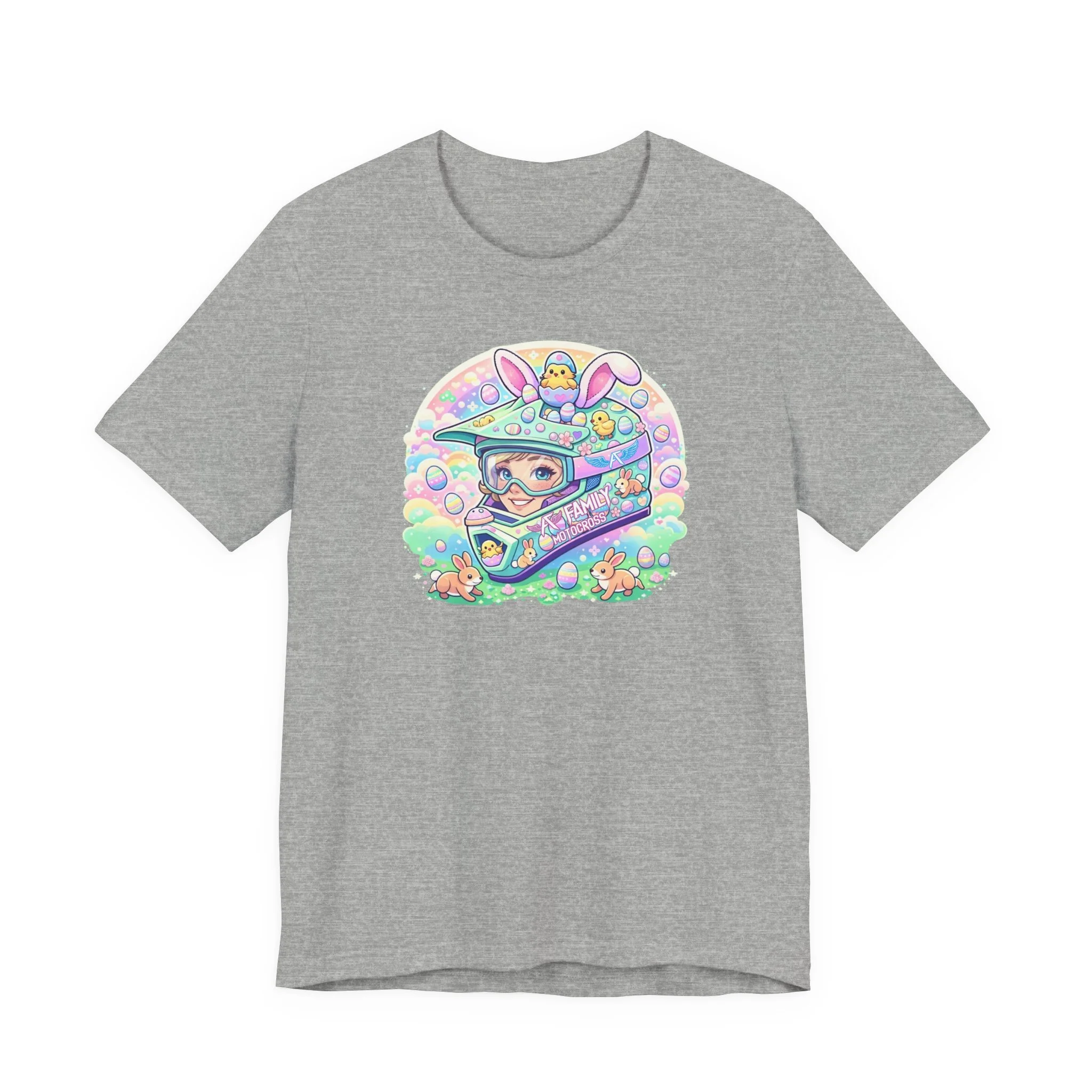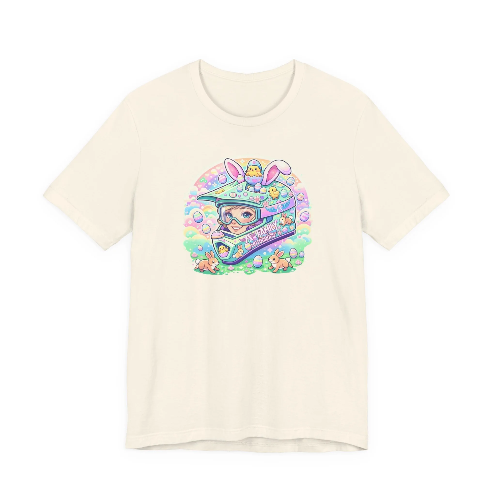 The A7 Family Dreamy Bunny Helmet Adult Shirt brings together motocross passion and playful spring vibes. Featuring a pastel bunny helmet design surrounded by soft, dreamy details, this tee is all about riding with heart and family spirit.