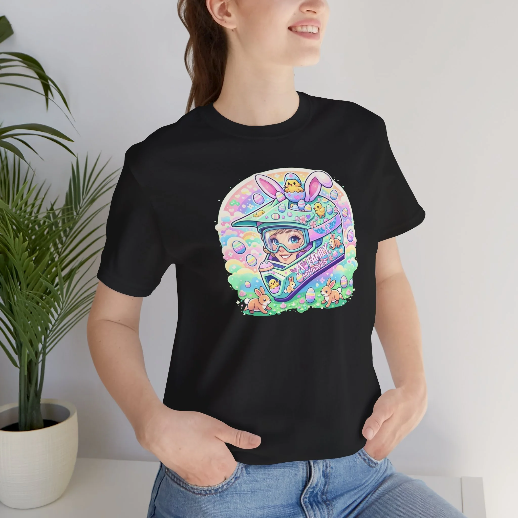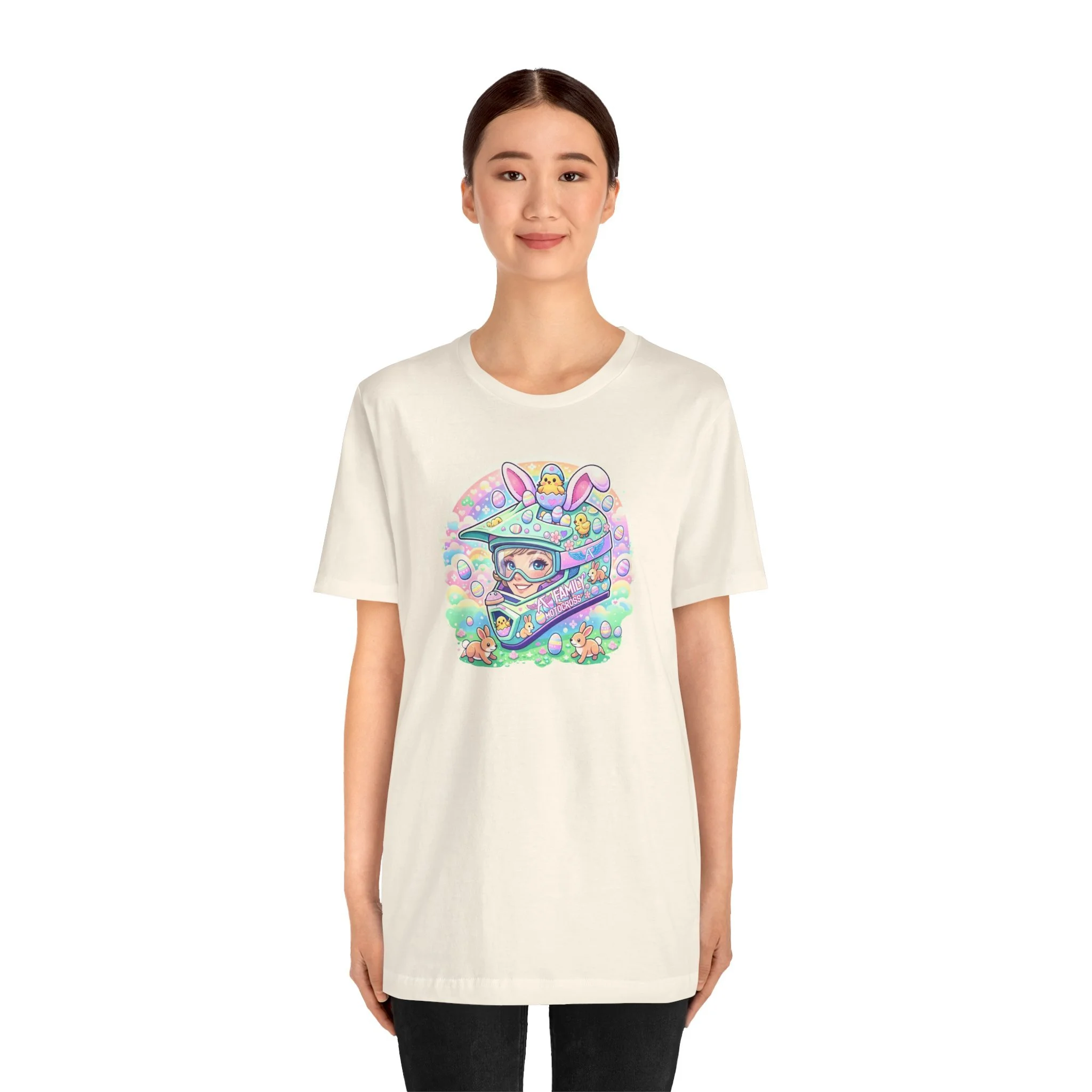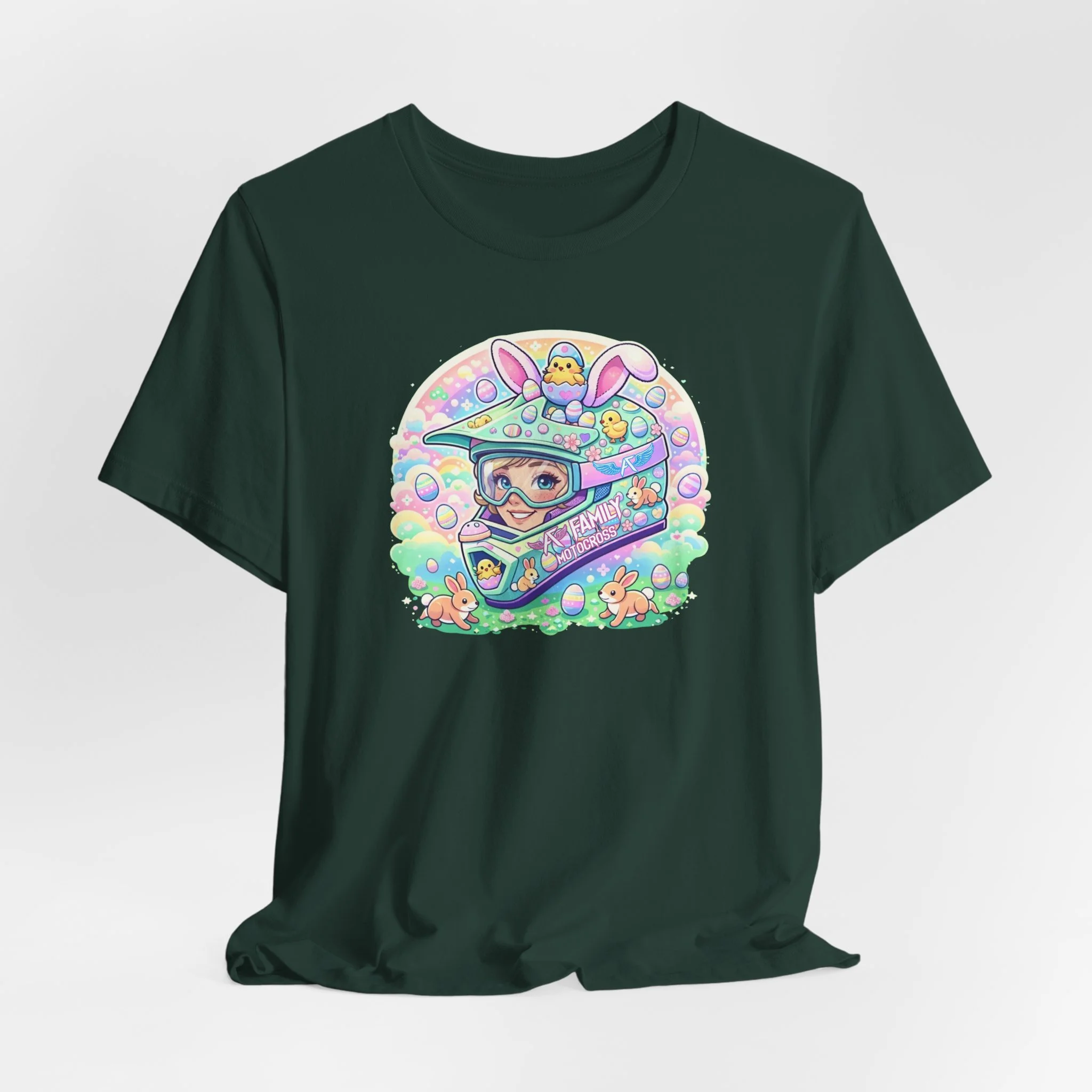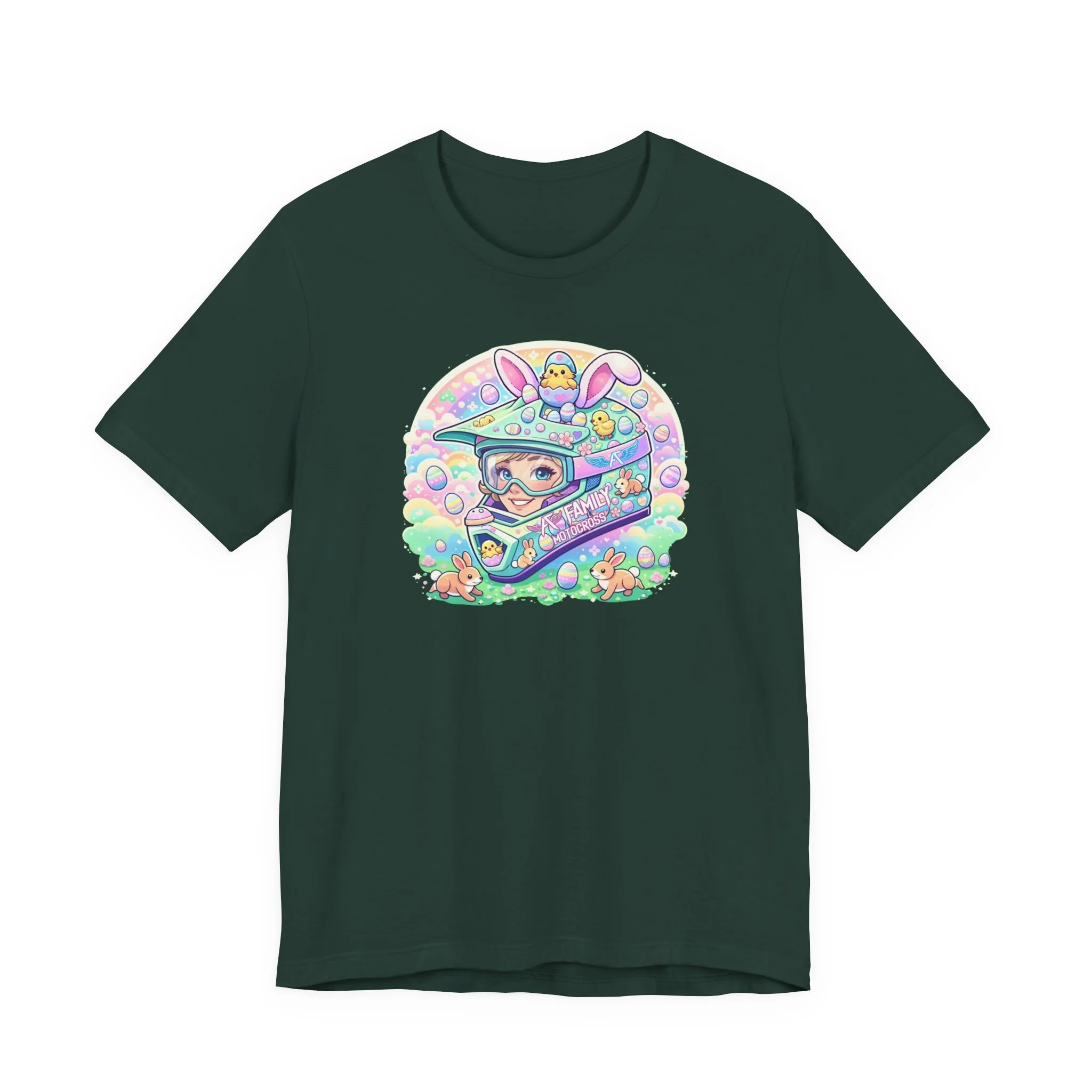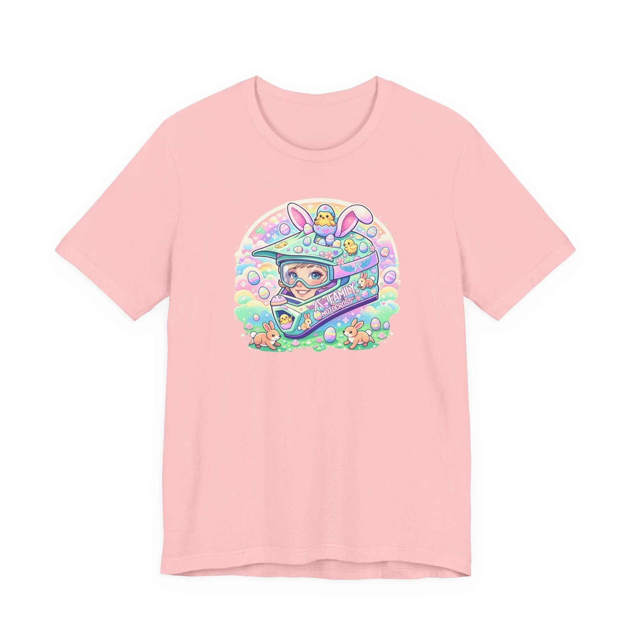 The A7 Family Dreamy Bunny Helmet Adult Shirt brings together motocross passion and playful spring vibes. Featuring a pastel bunny helmet design surrounded by soft, dreamy details, this tee is all about riding with heart and family spirit.